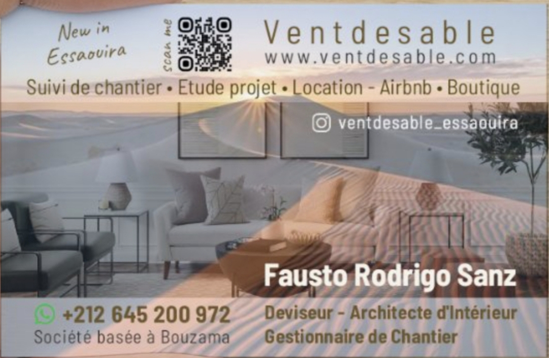 Depuis 4 années, j'ai construit à Essaouira un réseau de corps de métier de confiance, le meilleur entrepreneur pour une contruction soignée, des artisans sérieux, avec qui j'ai l’habitude de collaborer.